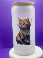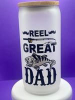 16 oz. Glass tumbler for the “fisherman” dad who also is a cat dad ♥️