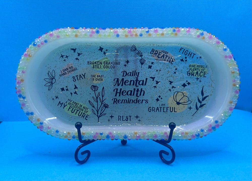 Trinket tray with mental Health awareness encouraging words with ripple effect bottom